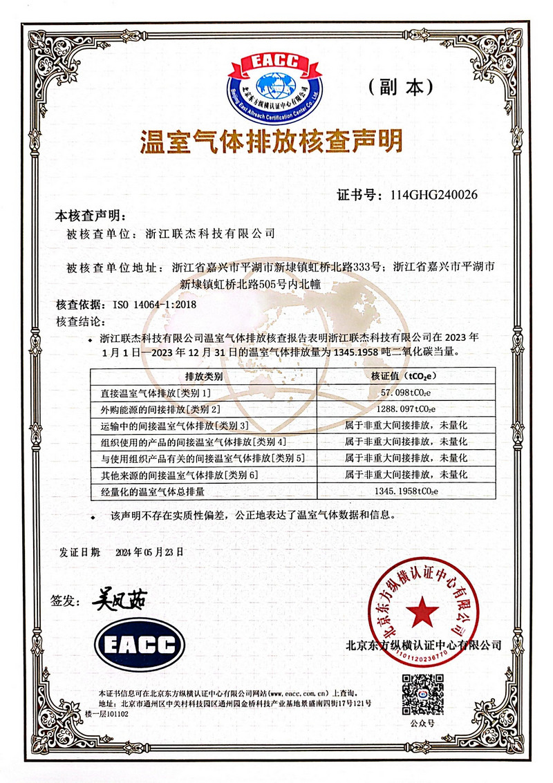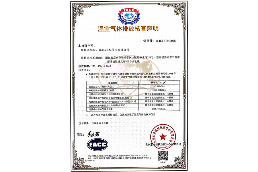 近日,公司通过北京东方纵横认证中心有限公司的专业审核,正式获得《温室气体排放核查声明》和《产品碳足迹证书》。本次核查覆盖公司整个生产区域,全面量化了202311-2023 12 31日范围内的温室气体排放数据,标志着公司在环境治理与可持续发展领域迈出关键一步。