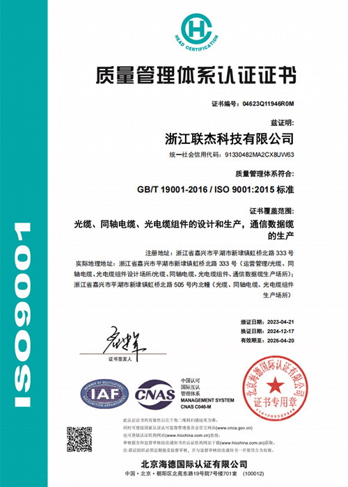 质量管理体系证书